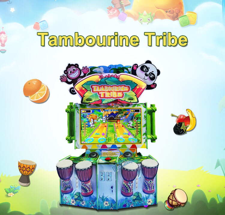 Tambourine Tribe is an interactive rhythm game that combines music, movement, and fun! Players start by inserting coins and using the drums to browse and select their favorite song. Once the game begins, players follow the rhythm cues on the screen and hit the tambourine in time with the falling fruit symbols. The more accurate the timing, the higher the score! With bright visuals, catchy music, and engaging gameplay, it's perfect for both kids and adults. For even more excitement, two players can go head-to-head using the same song, turning it into a fun musical competition. Get ready to follow the beat and enjoy the rhythm with Tambourine Tribe!